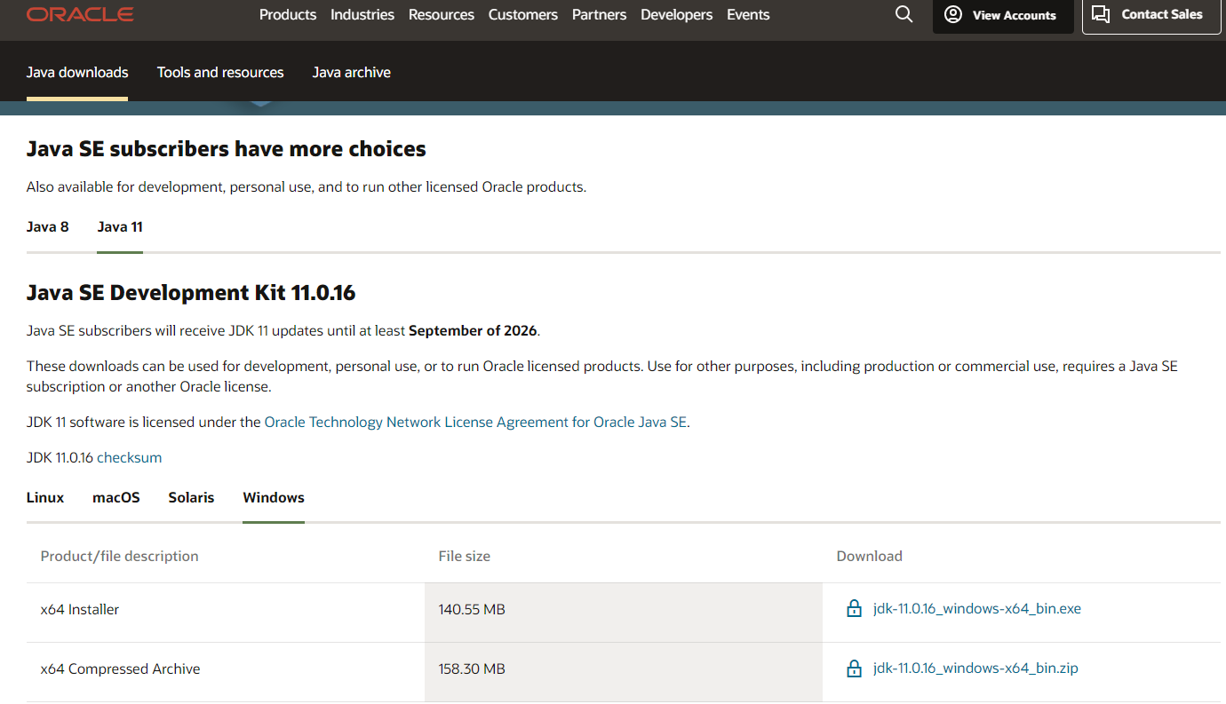 Java는 https://www.oracle.com/java/technologies/downloads/ 에서 다운로드 가능하며