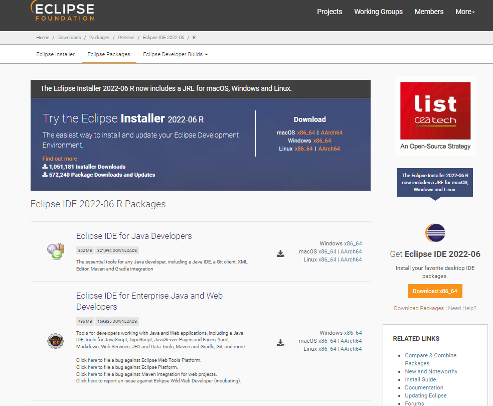 https://www.eclipse.org/ 에서 이클립스를 다운받을 수 있으며,